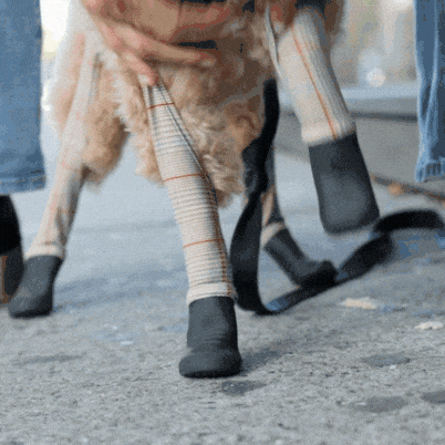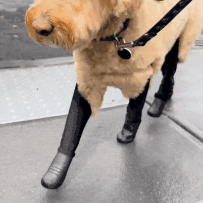 Your dog might take a few tries to get used to their Walkee Paws, but we guarantee they'll prefer our leggings to other dog boots. That's because our booties are made from flexible, stretchy Thermoplastic Elastomer (TPE) that allows them to feel the ground while walking. And because all four leggings connect together over the back, they're loose around the ankles for canine comfort.