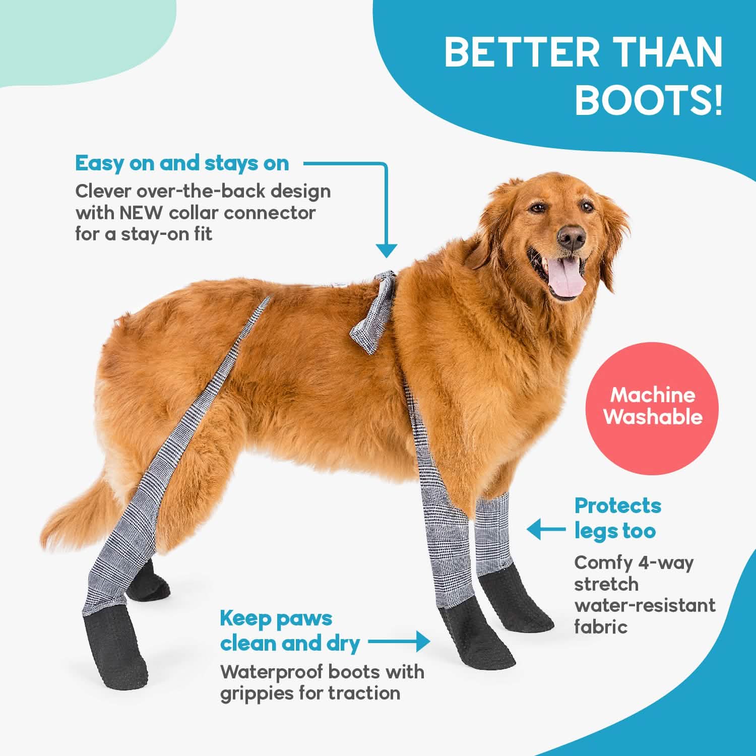 Over-the-back connectors to ensure you never lose a dog boot again! Allows you to customize the legging height on both front and back legs.