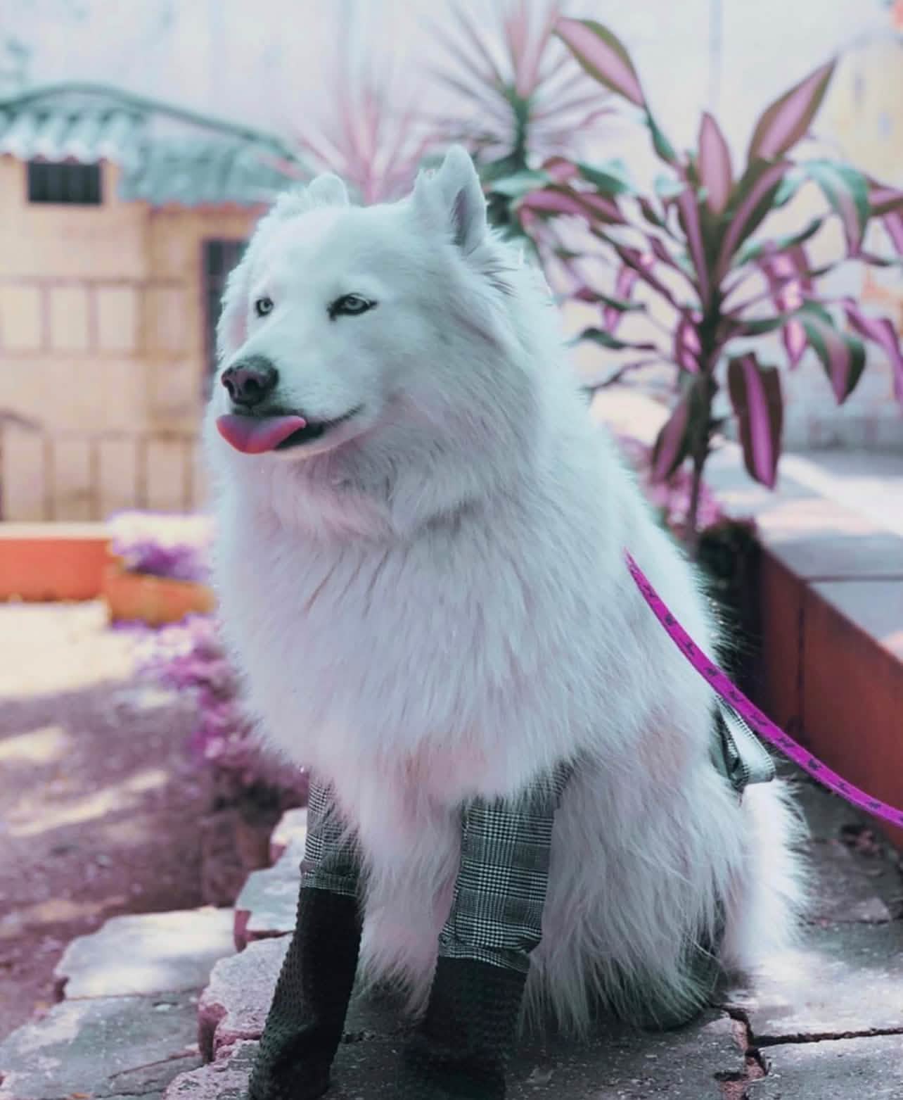 Our Easy-On design is super simple to get on and off—there are no elastic drawstring leg openings, and they feature an elastic collar connector to attach to your dog’s harness or collar.