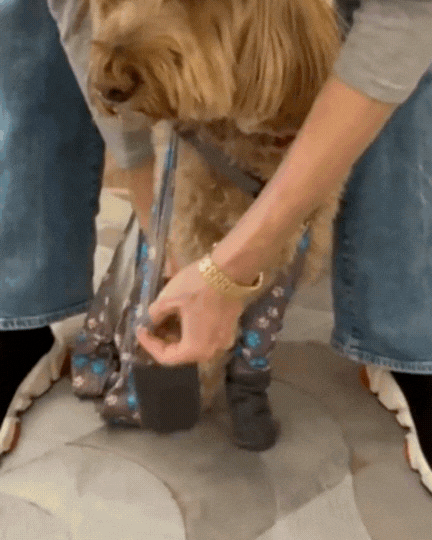 We tried 3 sizes from another brand before finding Walkee paws. The size small/ medium worked for my grand pup a medium Australian labradoodle. Measuring as instructed worked perfect. C Koscak