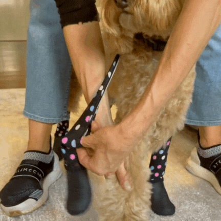 Your dog might take a few tries to get used to their Walkee Paws, but we guarantee they'll prefer our leggings to other dog boots. That's because our booties are made from flexible, stretchy Thermoplastic Elastomer (TPE) that allows them to feel the ground while walking. And because all four leggings connect together over the back, they're loose around the ankles for canine comfort.