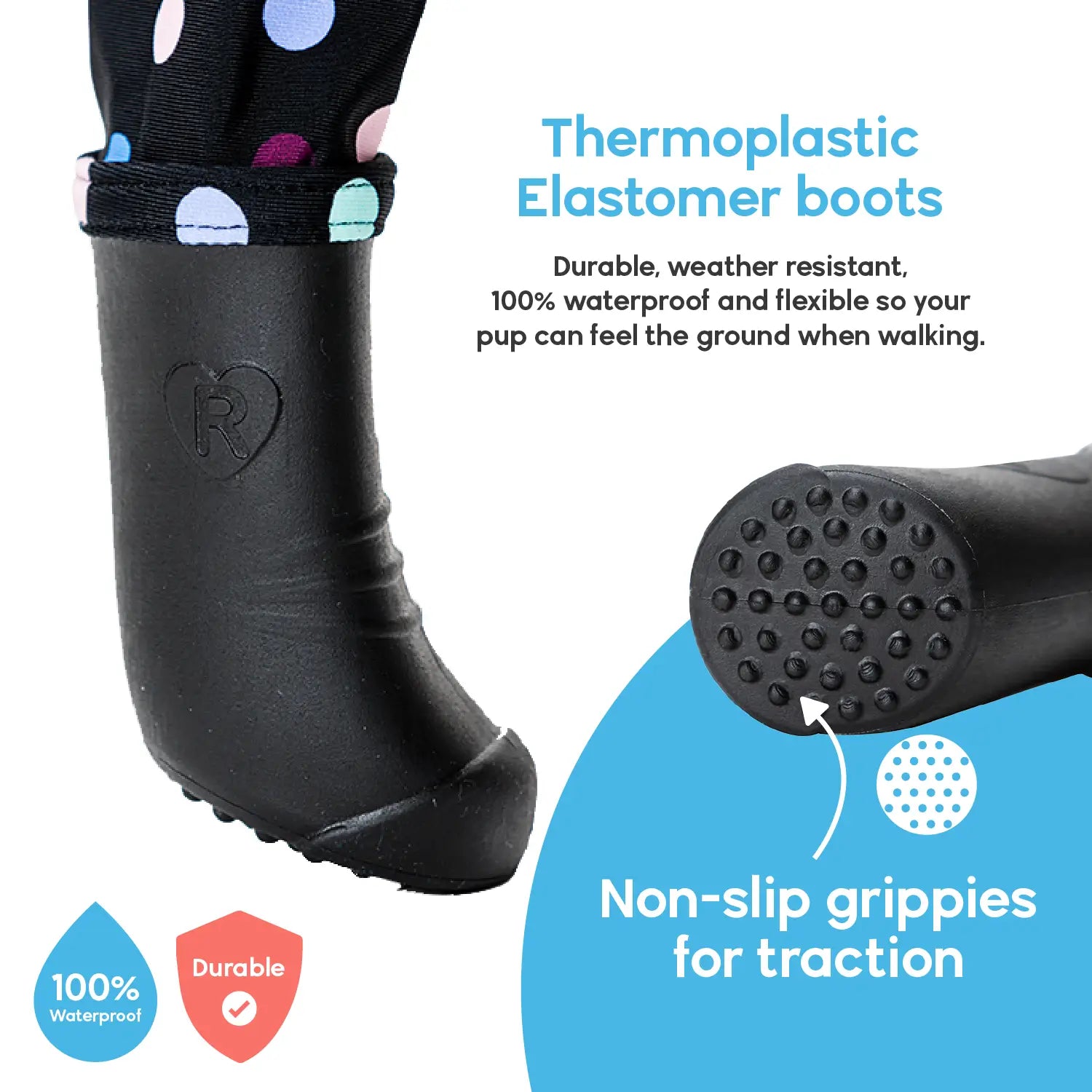 Strut, stroll, or zoomie — boots stay on, paws stay safe and every step stays dry with 100% waterproof protection.